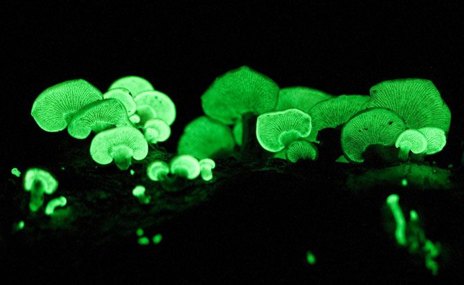 Этот удивительный гриб очень распространен в лесах Новой Англии. Гриб носит название Panellus stipticus и является одним из 70 биолюминесцентных видов грибов, которые растут и светятся в течение нескольких дней.