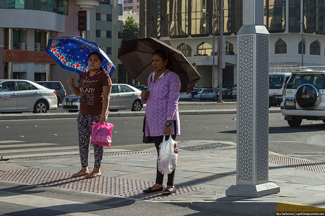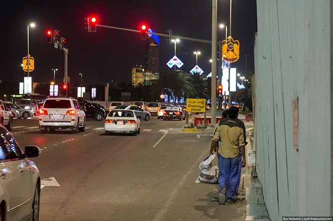 Ни один араб пешком не ходит. Это удел гастарбайтеров и прочей обслуги. Поэтому о пешеходах тут не думают. Тротуаров часто нет вообще, а если они и есть, то сделаны для галочки…