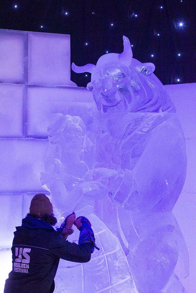 Чешский скульптор Каспар Иржи вырезает ледяную скульптуру