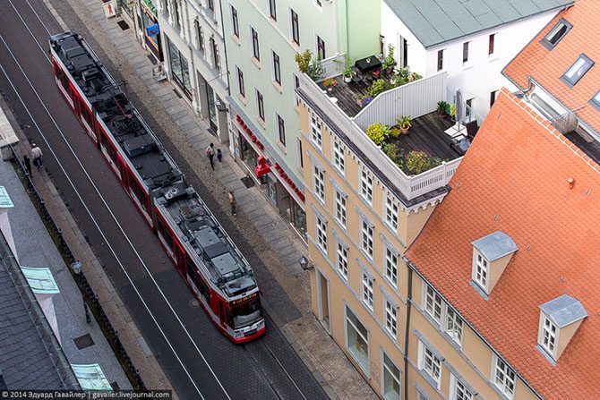 Улица, трамвай, уютная крыша.