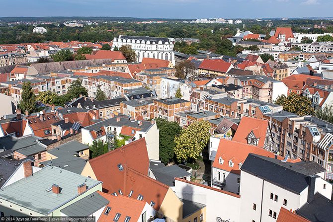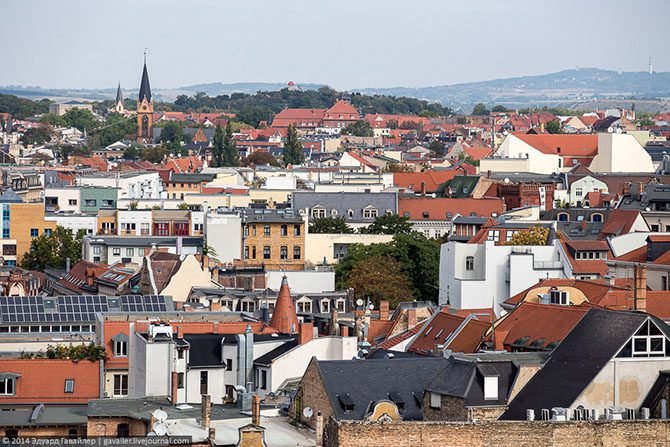 Малоэтажные панельные гдр-ешные домики интересно вписались в рельеф города.