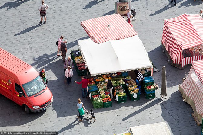 Поднимаюсь на рыночную церковь на смотровой мостик.