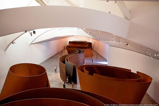 Как и в Нью-Йорке, экспозиция не очень интересная, но вот форма здания, интерьер «вскруживает» голову.