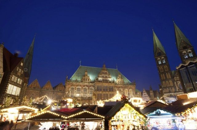 Ярмарка в Бремени работает с 27 ноября по 23 декабря, она простирается от Рыночной площади вдоль набережной Шлахте, а её ярко декорированные палатки красиво отражаются в водах реки Везер.