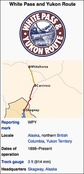 Железную дорогу через White Pass построили всего за два года. В 1897 году были основаны три отдельные компании для строительства линии протяженностью 325 миль. Большая часть строительства финансировалась британскими инвесторами, и этот участок был скоро закончен. Была выбрана узкая колея 3 фута (914 мм); узкая колея позволила упростить прокладку линии и сэкономила значительные средства. Но даже при таких условиях, потребовалось 450 тонн взрывчатки, чтобы достичь вершины перевала White Pass. Узкая колея требовала меньшего радиуса поворотов, облегчая задачу и позволяя следовать рельефу местности, а не расчищать дорогу взрывами.