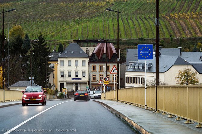 Шенген, похоже, деревушка небедная. Каждую осень вместе с листьями с деревьев осыпаются купюры евро. Их быстро разбирают туристы, но кое что остается. Нам повезло найти 20-ку, изменившую наш день. Мы сразу отменили обед с группой и решили освободившееся время потратить на изучение Люксембурга. А на найденные деньги попытаться пообедать. Кстати, хватило на всех троих!