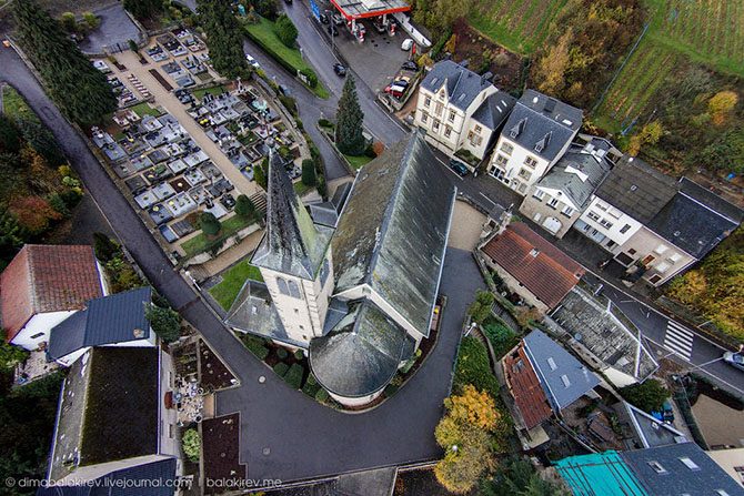 Осенний Люксембург глазами квадрокоптера. Главная туристическая достопримечательность — это сохранившаяся часть древнего замка. Его построили еще в 1390 году, но в 19 веке снесли. Все, кроме башни, где размещалась тюрьма. Местные хвастаются, что давным-давно сюда заезжал Виктор Гюго. Он, якобы, так влюбился в крепость, что нарисовал ее на счете в местной гостинице. Хотя, скорее, Гюго просто устал ждать и от нечего делать взялся за карандаш. Как бы то ни было, рисунок до сих пор хранится в государственном музее Люксембурга.