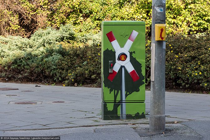 Приятно окрашенные элекро- и телекоммуникационные щитки.