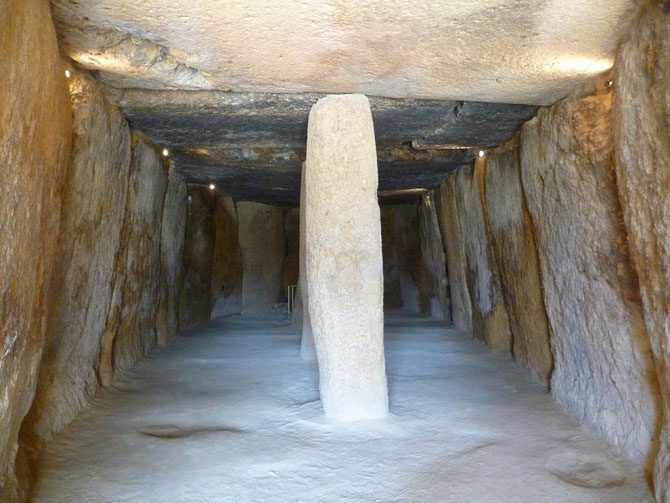 Три наиболее важных дольмена (или проход курганов) в Испании – Куэва-де-Менга, Куэва-де-Вьера и Толос Эль-Ромерал – являются одними из крупнейших в мире. Крупнейшие камни, используемые в их конструкции, весят 180 тонн, и были перевезены с места, которое находится, по крайней мере, за милю отсюда. Уникальная конструкция была основана около 3700 г. до н.э. Многие стенки имеют антропоморфные иллюстрации.