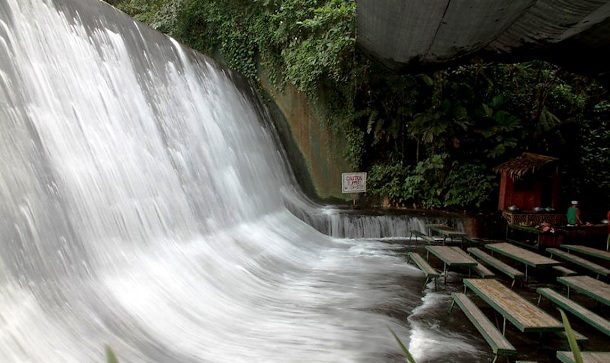 В этом ресторане можно забыть о надоевшем и скучном кондиционере, обычно охлаждающем вас в кафе во время ланча. Почувствуйте настоящую свежесть кристально чистого водопада в непосредственной близости. Чтобы насладиться этой непревзойдённой романтикой, придётся посетить город Сан Пабло на Филиппинах. Прекрасная местная еда сервирована на бамбуковых столиках, стоящих прямо у подножия великолепного водопада.