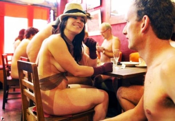 В американском клубе «Clothing Optional Dinners» раз в месяц проводятся причудливые нудистские вечеринки. Эта затея принадлежит приверженцу нудизма Джону Одоверу. Такие вечеринки имеют свои правила: во-первых, все посетители должны принести с собой то, на чём будут сидеть (например, полотенце), а во-вторых, весь обслуживающий персонал должен быть одет.