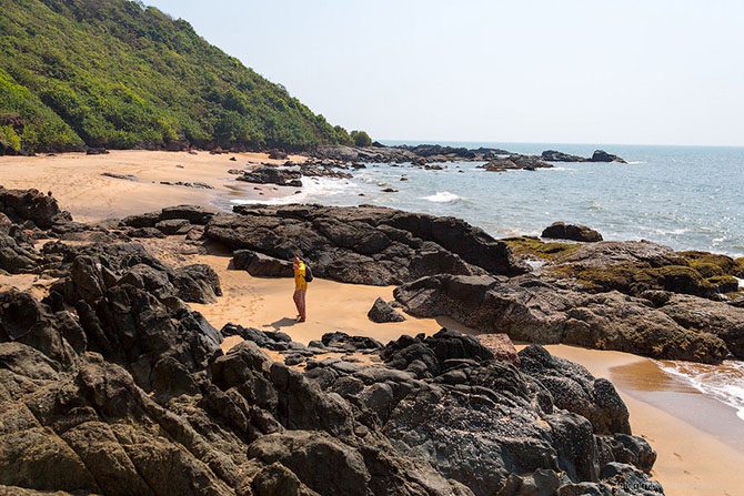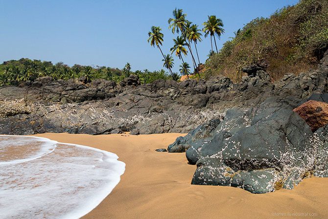 Казалось бы — Гоа, туристская мекка, толпы отдыхающих, но можно легко на байке добраться до такого вот персонального, пустующего пляжика и проваляться на нем в одиночестве полдня.