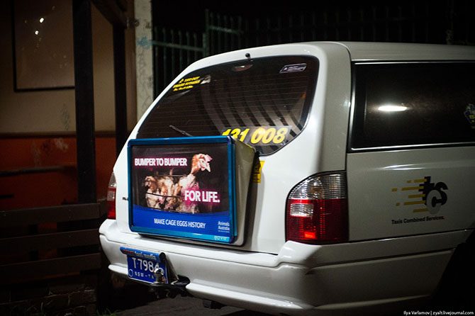 Наши в городе. Сначала я хотела выложить эту фотографию и написать что-то вроде: «После наглой выходки австралийского премьера Тони Эбботта, который оскорбил президента Путина, многие сиднейские таксисты повесили георгиевские ленточки и триколор в знак поддержки России.» Но потом подумала, что некоторые СМИ не поймут шутку.