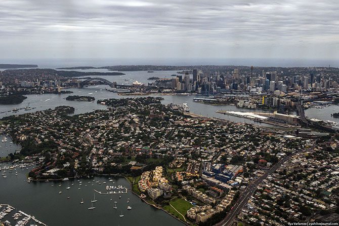 С самолета Австралия похожа на Америку. Такая же планировка городов. Малоэтажная застройка, одинаковые кварталы жилой застройки. Глазу не за что зацепиться.