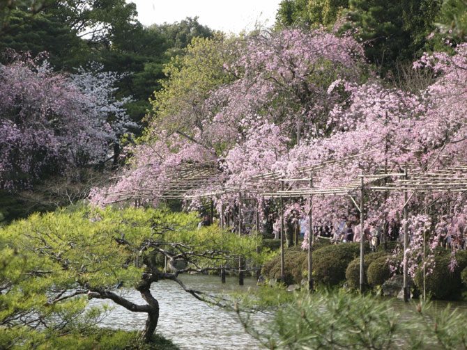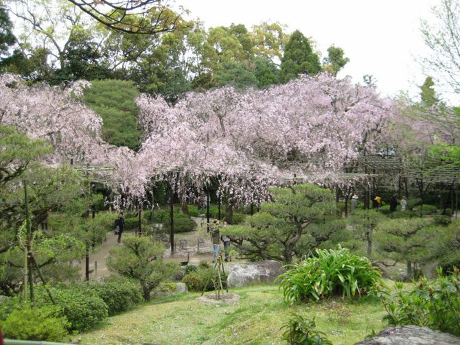 Minami Shin’en (Южный сад). Вишневые деревья этого сада предназначены для проведения вечеринок в саду, в течение которых аристократы развлекались, составляя японские стихи. Весной в саду цветут ярко-розовым цветом с опустившимися ветвями вишневые деревья. За вишнями следуют азалии в начале лета и Хаги (японский куст клевер) в осенний период.