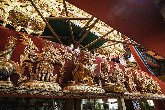 В разных залах стоят ступы с кудунгами и реликвиями разных кагьюпинских учителей и настоятелей монастыря.