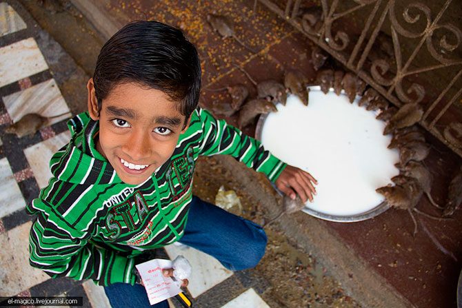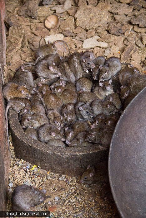 Вы когда-нибудь видели в одном месте 20 тысяч живых крыс? А кормили ли когда-нибудь «диких» крыс с рук или разрешали им ползать по всему вашему телу? Если нет, но есть желание это всё сделать, то вам лежит дорога в Дешнок, город, где находится знаменитый на весь мир храм Карни Мата.