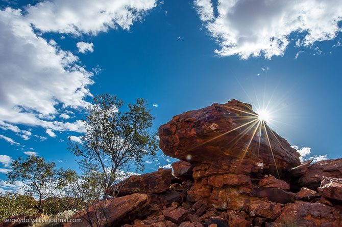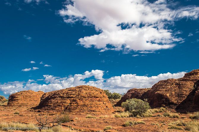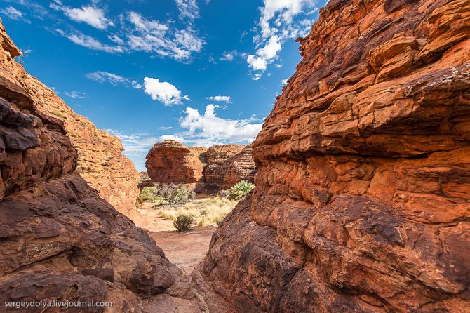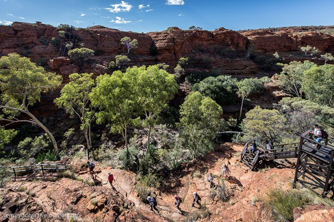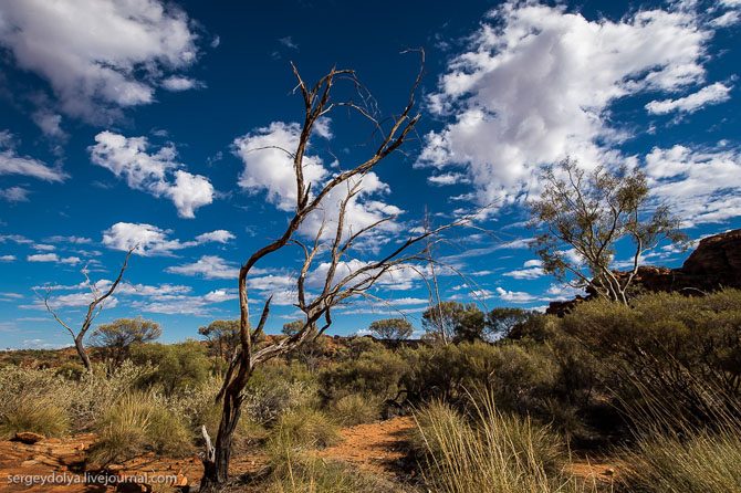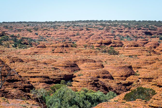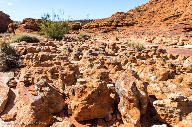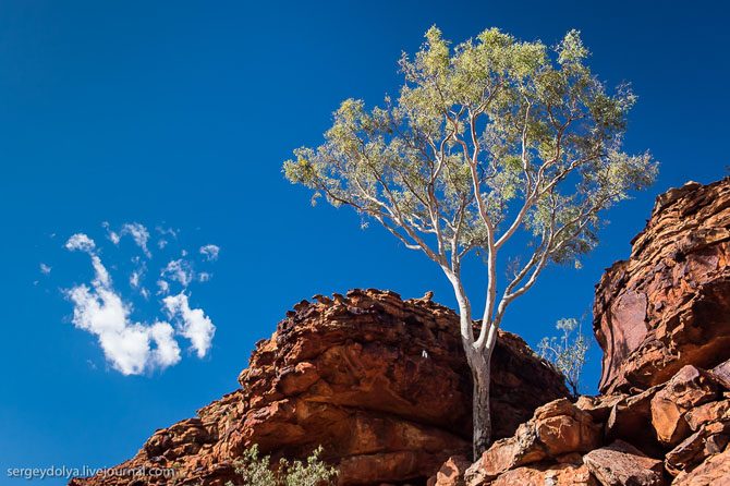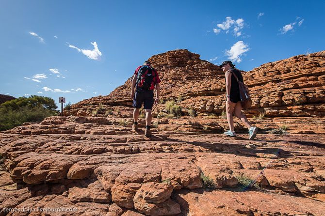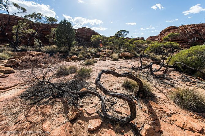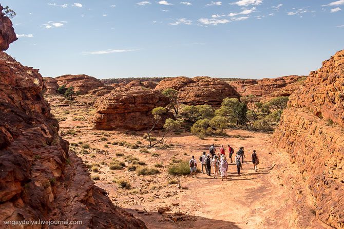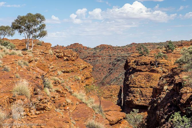 Королевский каньон в Центральной Австралии – относительно новый туристический маршрут. Местных жителей тут практически нет, да и нормальная дорога появилась только 20 лет назад. Стены каньона поднимаются на 300 метров, и образуют собой настоящий скальный лабиринт, по которому проходит несколько пеших маршрутов.