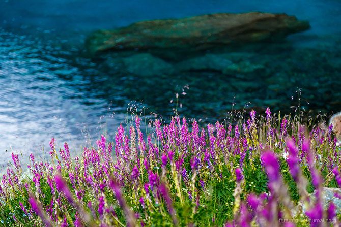 Может быть не в самом озере, а в том, что его окружает стоит поискать все остальные цвета? Вот, например, лиловый.