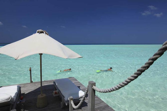 «Soneva Gili» предлагает 45 роскошных вилл на воде, включая дома «Крузо» и частный домик, куда можно добраться только на лодке.