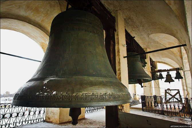 Самый большой колокол по имени Сысой (1688 года отливки) весит 32 тонны или 2000 пудов. Язык колокола весит около полутора тонн, раскачивают его два звонаря.