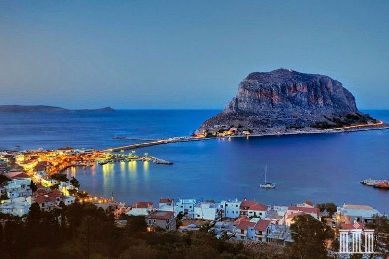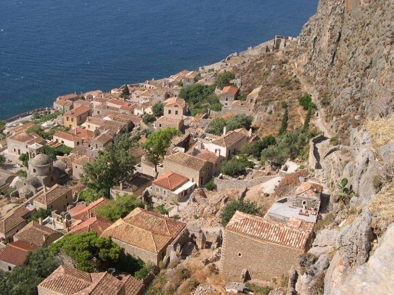 Монемвасия — скалистый остров у восточного побережья Пелопоннеса в Греции, связанный с материком короткой дорогой. Остров составляет приблизительно 300 метров шириной и один километр длиной. Большую его часть занимает плато, возвышающееся на сто метров над уровнем моря. На склоне этого плато находится небольшой город, скрытый от материка.