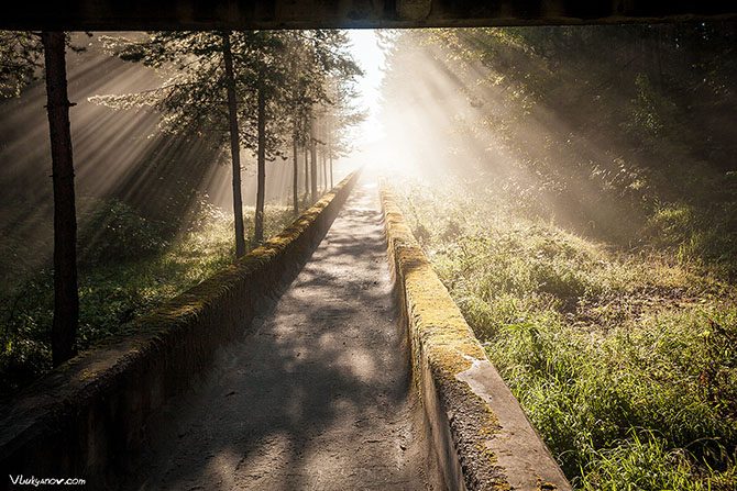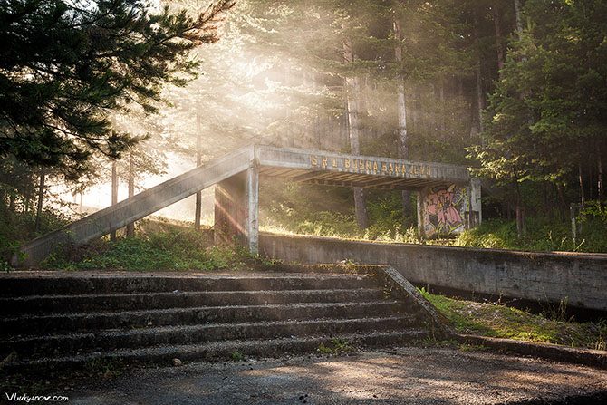 Что это? Да, уже наверняка интересно! Это заброшенный санно-бобслейный трек, построенный в Сараево к олимпиаде 1984 года. Почти на полтора километра раскинулась бетонная змея по склону горы.