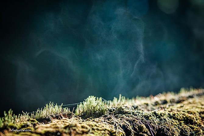 Ладно, ладно ни каких спор. Это просто испарение воды. На некоторых частях бетонной конструкции сохранился слой из чего-то похожего на застывшую монтажную пену. Она сильно напиталась влагой из тумана и росы. Теперь под палящими лучами солнца вода начала испаряться.