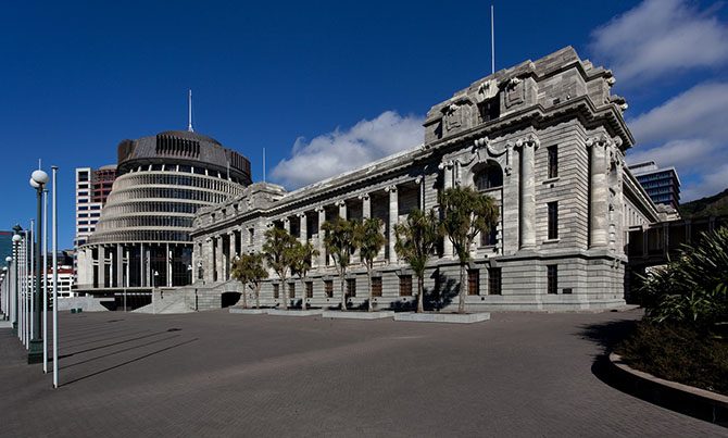 Новая Зеландия. Веллингтон. Здание парламента Новой Зеландии. 1907 году здание было уничтожено в результате пожара. Его реконструкция началась в 1914 году и ведётся по сей день. Стоит также отметить, что местные парламентарии выполняют свою работу по соседству со строителями. (russellstreet)