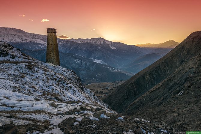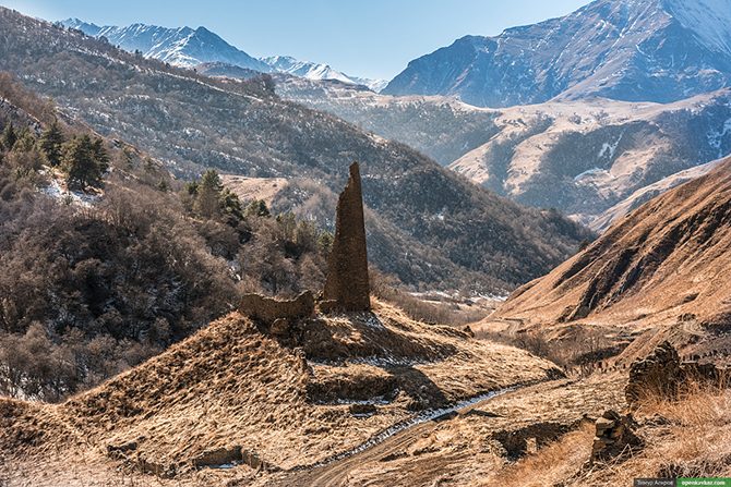 Bот фотозарисовки Чеченской республики. Незабываемая экскурсия по новым местам – по свежепостроенной дороге в заброшенный Галанчожский район, по Терлойскому ущелью, где сохранились великолепные башенные комплексы Никарой и Моцарой, а также по другим достопримечательностям, которые я впервые увидел зимой.