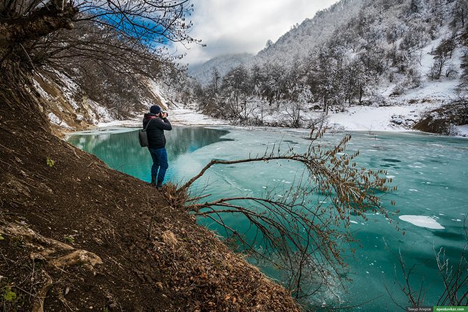 Следующая серия фото сделана по реке Аргун. Зимой Аргун наполняется ледниковыми водами, становясь синим или зеленым. Это не фотошоп, цвета везде реально такие.