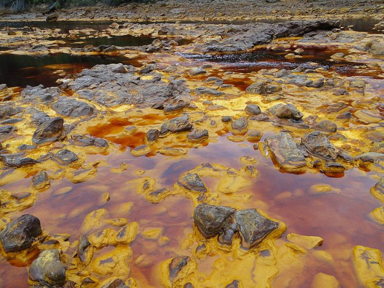 5. Река Тинто на юго-западе Испании.Повышенная кислотность вод и высокое содержание в ней оксидов железа придали реке такой неземной, марсианский вид. Для большинства организмов такая среда является смертельной, однако в реке обитают живые микроорганизмы — экстремофилы, в том числе водоросли и грибы.