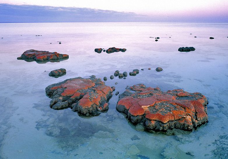 1. Залив Шарк (Shark Bay) в Западной Австралии.85% всей истории существования планета Земля была заселена только микробами. Единственным доказательством этого являются продукты деятельности цианобактерий — строматолиты. Чаще всего строматолиты можно обнаружить в экстремально соленых водах. А живые экземпляры, которые сохранились до сих пор, можно встретить именно в заливе Шарк.
