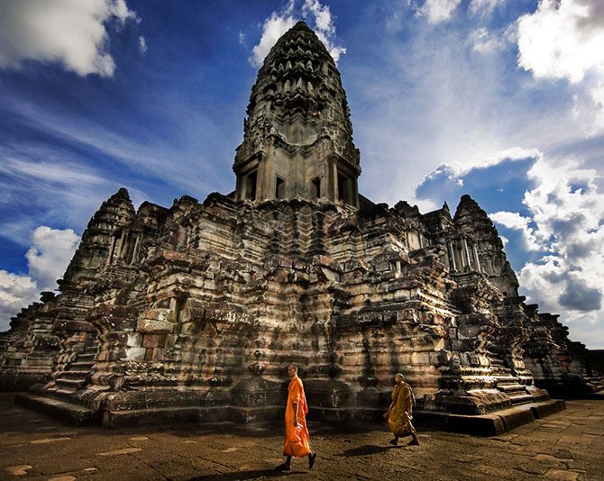 Камбоджа славится богатой культурой с многочисленными традициями. Здесь можно найти множество древних храмов, самым известным из которых является Ангкор-Ват, а также дворцовых комплексов, музеев и других достопримечательностей. Средняя стоимость гостиничных номеров за ночь составляет $20; обед на одного человека обойдётся в $3. На фото: Ангкор-Ват.