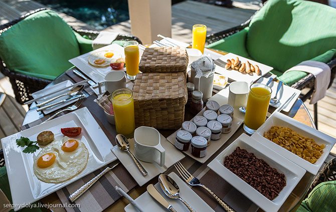 Ну, и разумеется, трапеза в номере, если жара и лень куда-то ехать. Для гостей привезут все что угодно – завтрак, обед или ужин, и даже просто закуски: