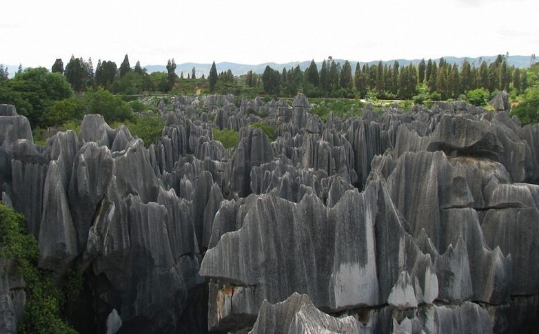 Этот удивительный «Каменный лес» расположен в 120 километрах к юго-востоку от города Куньмин в Китае. Во времена династии Мин, эти высокие скальные шпили называли «Первым чудом света». В настоящее время он внесен в список Всемирного наследия ЮНЕСКО. Необычные формы высоких утесов, похожих на растущие деревья или животных, являются результатом эрозии, которая длилась миллионы лет.