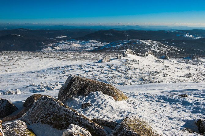 Горная Шория крайне не высока, и сами горы больше похожи на высокие холмы. Как таковых пиков здесь практически нет.