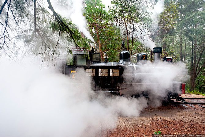 Конечно, нужно покататься на поезде. Его маршрут проходит по старой железнодорожной ветке, которая раньше использовалась для транспортировки вырубленного леса. Теперь это музейная дорога.