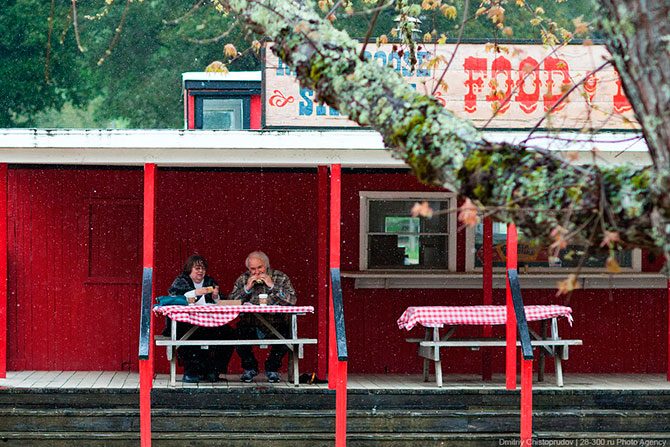 Продавец — старый дедушка, инвалид, который уже много лет не спускается к магазину, а живет дома. Кто-то из его помощников иногда пополняет ассортимент на «витрине» и забирает деньги из кассы. Все построено на честности: приехал, взял связку дров, положил $10 в кассу, взял чек и уехал.