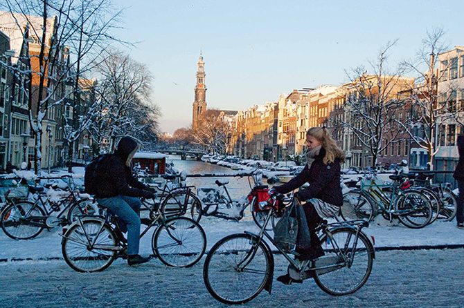 Приятно совершить велосипедную экскурсию по голландскому городу и посмотреть удивительные местные достопримечательности. Здесь предусмотрены специальные велосипедные дорожки, обозначенные белыми указателями.