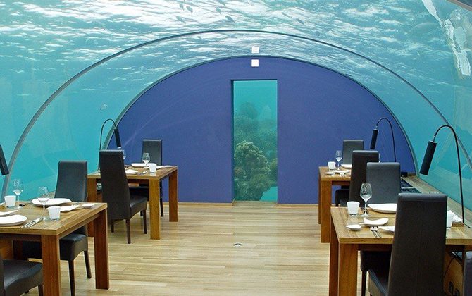 Подводный ресторан «Итхаа», расположенный на Мальдивах, является одним из очень немногих подводных ресторанов в мире. Строительство «Итхаа» было полностью закончено в 2005 году. Ресторан был построен в качестве дополнительной секции близлежащего отеля, он был разработан и построен компанией «M. J. Murphy». В ресторане можно просто перекусить, а можно полноценно поужинать. Его также можно арендовать в качестве помещения для проведения торжественных мероприятий, однако главной достопримечательностью ресторана является полностью стеклянный туннель, который обеспечивает панорамный вид в 270 градусов на окружающую морскую флору и фауну. Спиральная лестница, связанная с пристанью, обеспечивает лёгкий доступ к ресторану. К сожалению, согласно подсчётам, строение рассчитано ровно на 20 лет, а это означает, что к 2025 году оно, скорее всего, будет закрыто.