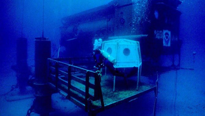 Рифовая База «Аквариус» является подводной лабораторией, которая находится на дне океана, приблизительно на глубине 19 метров, недалеко от побережья штата Флорида. База, заполненная исследовательским оборудованием и компьютерами, была построена в 1986 году и разработана так, чтобы морские биологи и другие учёные могли исследовать коралловый риф и изучить флору и фауну, обитающую в области рифа. Рифовая База «Аквариус» является особенной, потому что она позволяет исследователям использовать специальную технику погружения под воду, известную как погружение с автономным дыхательным аппаратом. Это означает, что они могут оставаться под водой длительное время без того, чтобы у них возникала необходимость вернуться на поверхность. Это позволяет учёным не только осуществлять исследования, которые бы они не могли провести каким-либо другим способом, но также снижает риск развития декомпрессионной болезни благодаря уменьшению количества погружений, необходимых для выполнения работы.