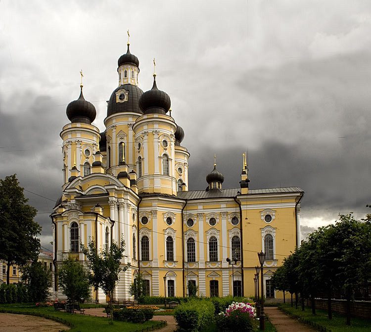 Троице-Измайловский собор на Троицкой площади в Адмиралтейском районе Санкт-Петербурга. Полное наименование — Собор Святой Живоначальной Троицы лейб-гвардии Измайловского полка. Крестообразный в плане каменный собор увенчан мощным пятиглавием. Храм построен в стиле ампир. На время освящения собор являлся крупнейшим в России. Купола расписаны золотыми звездами по голубому фону по личному указанию Николая I, данному в 1826 году: купола должны быть выкрашены наподобие куполов Архангельского собора в Москве и Тверского в Твери. Фасады собора оформлены шестиколонными портиками коринфского ордера со скульптурным фризом. В нишах портиков находятся бронзовые фигуры ангелов.