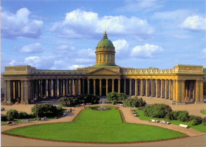 Казанский кафедральный собор в Санкт-Петербурге, храм воинской славы, одно из великолепнейших храмовых сооружений Санкт-Петербурга. Главный фасад собора выходит на Невский проспект и формирует неповторимый облик главной магистрали города. Здание храма, задуманное архитектором А.Н. Воронихиным, несёт в себе черты европейской классической архитектуры, в частности, собора Святого Петра в Риме, и в то же время здесь явно прослеживается русский архитектурный стиль с элементами эклектики и классицизма. Собор поражает своей гигантской, слегка изгибающейся колоннадой, которая состоит из 96 тринадцатиметровых колонн коринфского ордера. Эти огромные колонны составлены из блоков камня, привезённого со специальных каменоломен в Гатчине, пригороде Санкт-Петербурга. А во внешнем оформлении собора имеются живописные рельефы и статуи.