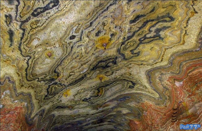 Карналлит может принимать многие цвета: желтый, белый, красный, синий, а иногда может и вовсе не иметь цвета. Хотя с виду может показаться, что все эти рисунки выполнены человеком, на самом деле все они были созданы самой природой. Кроме карналлита здесь также можно найти хлорид, магний и калий.
