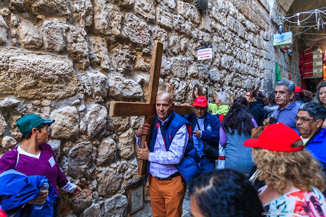 По Виа Долороса постоянно идут паломники, кто просто с молитвой, кто с крестами повторяют путь Иисуса. Виа Долороса, Крестный путь, Дорога скорби – это дорога, по которой Иисус Христос прошел от места приговора к казни до Голгофы. На протяжении Крестного пути происходили различные события, которые останавливали печальное шествие. На сегодняшний день канонизировано 14 остановок или станций, каждая из которых отмечена часовнями или церквями.