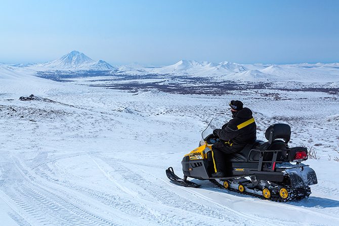 Одно из уникальных мест Камчатки – Ходуткинские горячие источники. Самое лучшее время для путешествия к источникам на снегоходе это апрель. Снег уже начал потихоньку таять и уплотняться, что делает поездку очень комфортной.