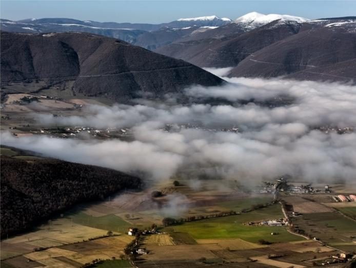 Из-за большого количества гор, в прилегающих долинах часто надолго оседает густой туман — зрелище незабываемое…