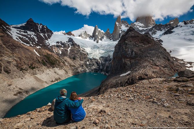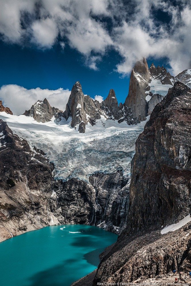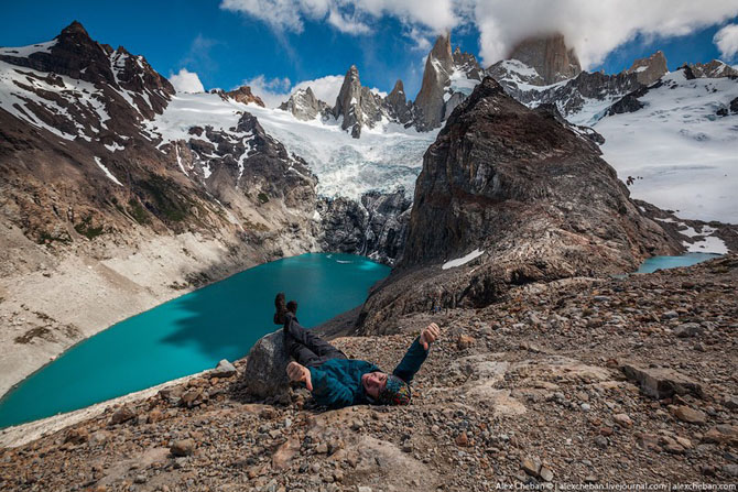 Рассказывает Саша Чебан: И снова я к вам с чем-то невероятным из Патагонии… Даже не знаю, как я делал эти фотографии, потому что снимать здесь сложно… Дыхание замирает, невозможно отвести взгляд от кристально чистых ледников, озер лазурного цвета, но самое главное – это Фицрой. Это настолько красивая вершина!
