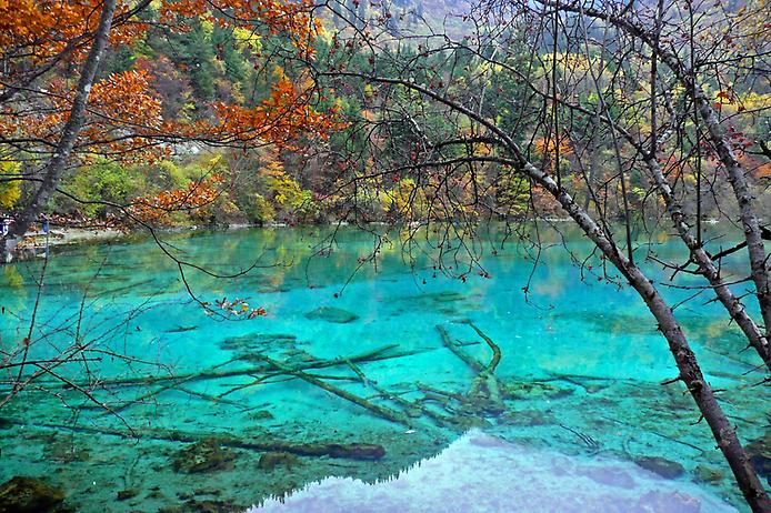 Древняя вода Вухуа Хаи, или озеро Пяти Цветков является гордостью национального парка Чзючжайгоу в Китае. Его так называют из-за постоянно изменяющегося цвета воды, в зависимости от температуры и лучей солнца.